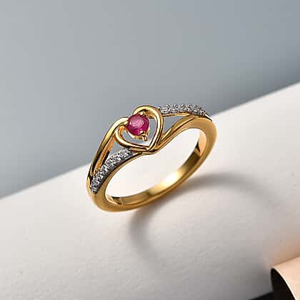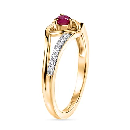 Royal Bali Collection - D'Joy African Ruby & Moissanite Solitaire Heart Ring in 18K Vermeil Yellow Gold Plated Sterling Silver