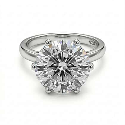 Moissanite Solitaire Ring in Platinum Overlay Sterling Silver