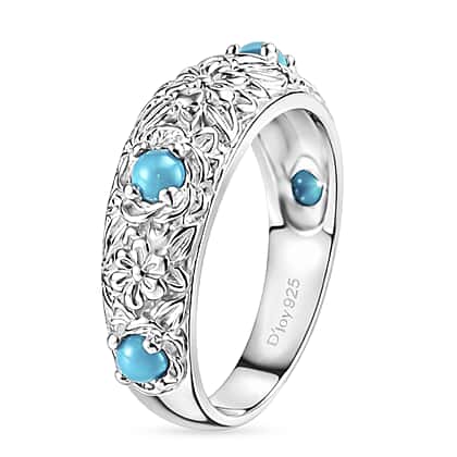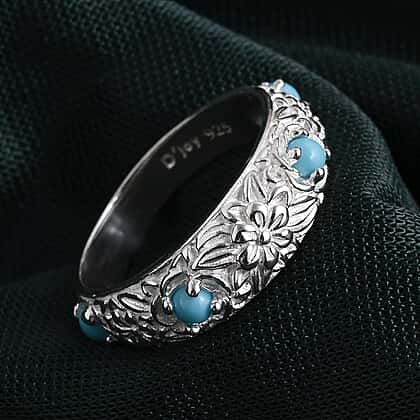 Royal Bali Collection - D'Joy Sleeping Beauty Turquoise Sterling Silver Floral Band Ring 0.50 Ct.