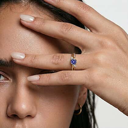 D'Joy Tanzanite, Moissanite Ring in 18K Vermeil Yellow Gold Plated Sterling Silver