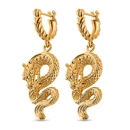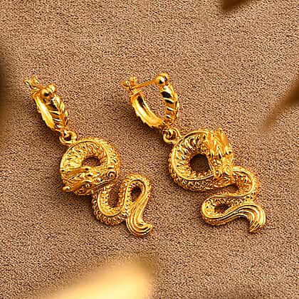 D'joy Royal Bali Collection Handmade Dragon Earrings with Clasp in 22K Vermeil Yellow Gold Over Sterling Silver