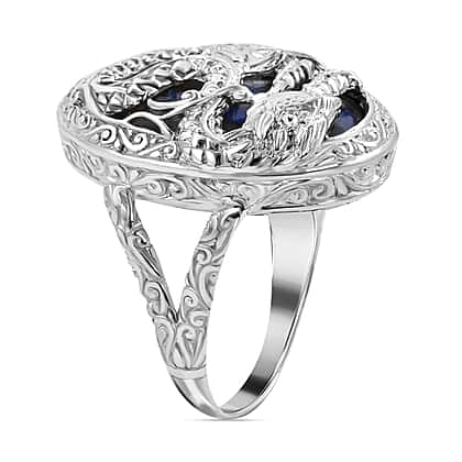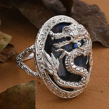 Royal Bali Collection - Labradorite Dragon Ring in Sterling Silver 35 Ct, Silver Wt. 7 GM