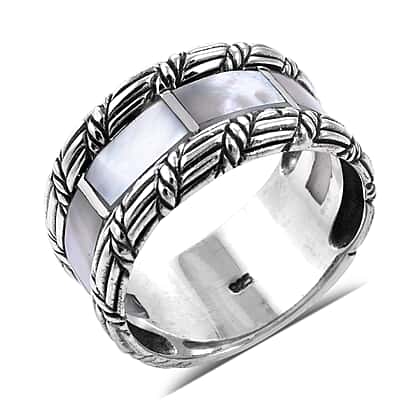 Royal Bali Collection Mother of Pearl Eternity Band Ring in Sterling Silver 6 Grams