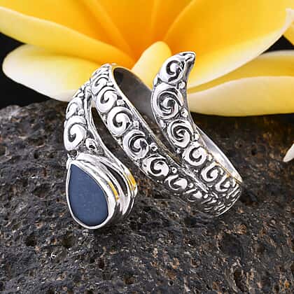 Royal Bali Collection- 1.37 Ct. Peruvian Blue Opal Ring in Sterling Silver