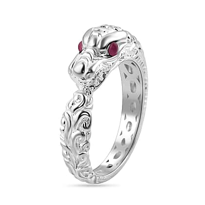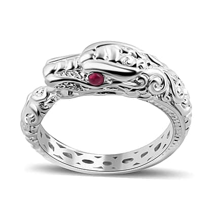 Royal Bali Collection - Ruby Naga Ring in Sterling Silver, Silver Wt 5.00 GM