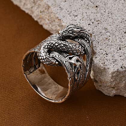 Royal Bali Collection - Sterling Silver Dragon Ring, Silver Wt. 10 Gms