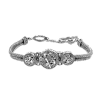 Royal Bali Collection - Sterling Silver Dragonfly Tulang Naga Bracelet (Size 7.5 with Extender), Silver wt 21.12 Gms