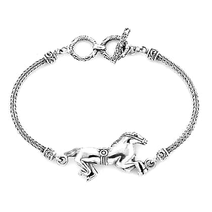 Royal Bali Collection - Sterling Silver Horse Tulang Naga Toggle Bar Bracelet (Size 7.5 with Extender), Silver wt 13.87 Gms