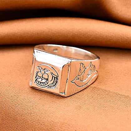This Sterling Silver Signet Ring from the Royal Bali Collection is a masterpiece of Balinese craftsmanship. Intricate designs of animals inspired by the island's rich heritage adorn the surface, creating a piece that is both a symbol of personal identity and a testament to traditional artistry, all while gleaming in the timeless elegance of sterling silver.