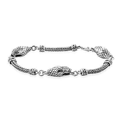 Royal Bali Collection - Sterling Silver Snake Head Tulang Naga Bracelet (Size 7.5), Silver wt 22.00 Gms