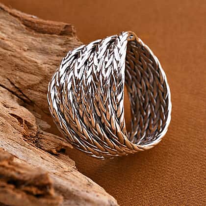 Royal Bali Collection - Sterling Silver Tulang Naga Braided Ring, Silver Wt. 8.50 Gms