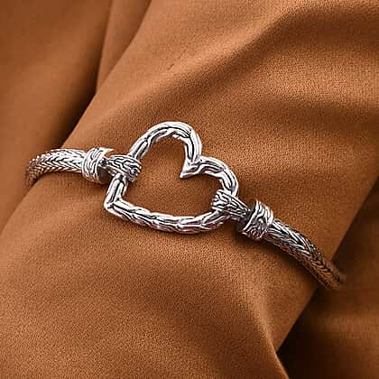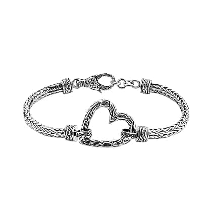Royal Bali Collection- Sterling Silver Heart Bracelet (Size - 7)