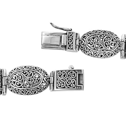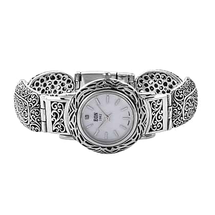 Royal Bali Collection EON 1962 Swiss Movement Water Resistant Scroll Work Watch (Size 7.25) in Sterling Silver, Silver wt. 32.00 Gms