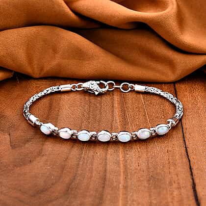 Royal Bali Collection Mega Closeout - Ethiopian Opal Borobudur Bracelet (Size 7.5) with Lobster Clasp in Sterling Silver 2.40 Ct, Silver Wt. 10.50 Gms.