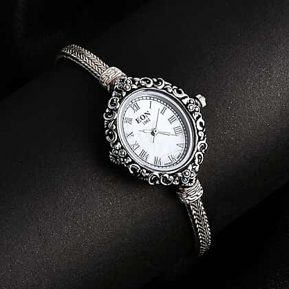 Royal Bali Collection Sterling Silver Tulang Naga Chain Bracelet Watch (Size - 8)