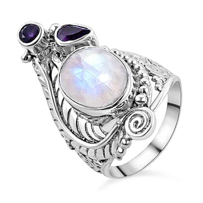 Sajen Silver Collection - Rainbow Moonstone, African Amethyst Ring Sterling Silver 8.57 ct.