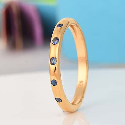 Royal Ceylon Sapphire Band Ring in 14K Gold Overlay Sterling Silver 0.10 Ct.