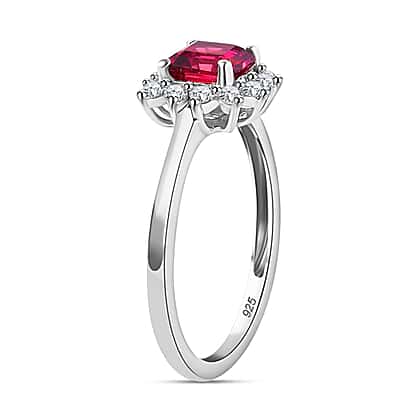Rubellite, Moissanite Halo Ring in Rhodium Overlay Sterling Silver, 0.953 Ct.