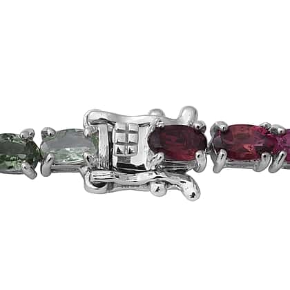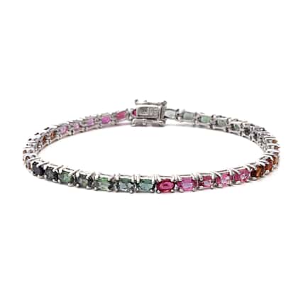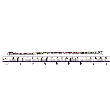 8.18 Ct Multi Tourmaline Tennis Bracelet in Rhodium Plated Silver 8.76 Grams 7.5 Inch