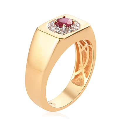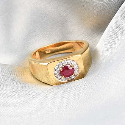 Signet Ring with Ruby and Zircons in 14K Gold Overlay Sterling Silver