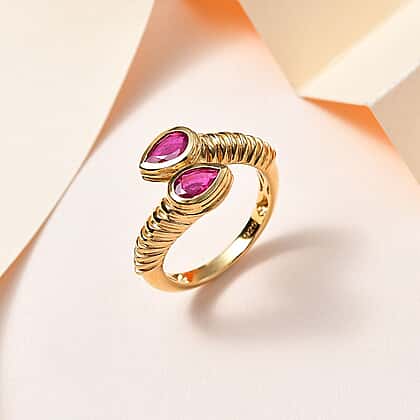 Ruby Bypass Ring in 18K Vermeil Yellow Gold Plated Sterling Silver 1.17 Ct