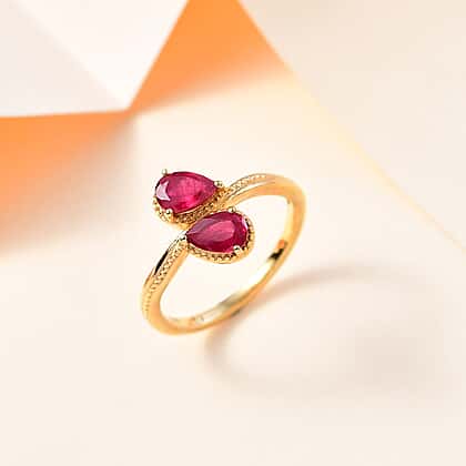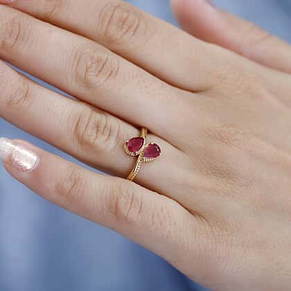 Ruby Bypass Ring in 18K Yellow Gold Vermeil Plated Sterling Silver 1.10 Ct
