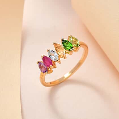 Ruby, Chrome Diopside, Blue Topaz, Amethyst, Peridot & Citrine Ring in 18K Vermeil Yellow Gold Plated Sterling Silver