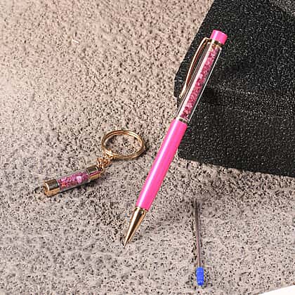 Enrich your accessories collection with this unique pen filled with genuine ruby gemstone chips. It is made from high-quality plastic, glass and metal. This set includes a pen refill, keychain and a pen secured in a box packaging. This pen deserves a unique place in your stationary piece and is a unique gift to give your mentor or classmate.