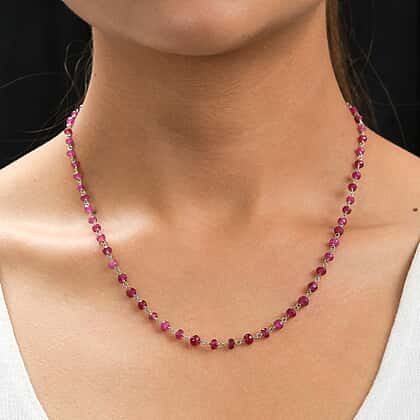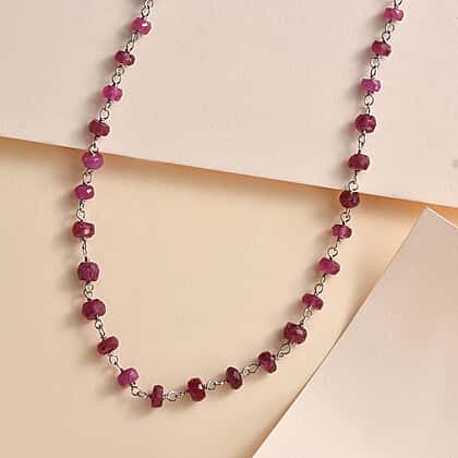 Ruby Necklace (Size - 20) in Rhodium Overlay Sterling Silver 22.00 Ct.
