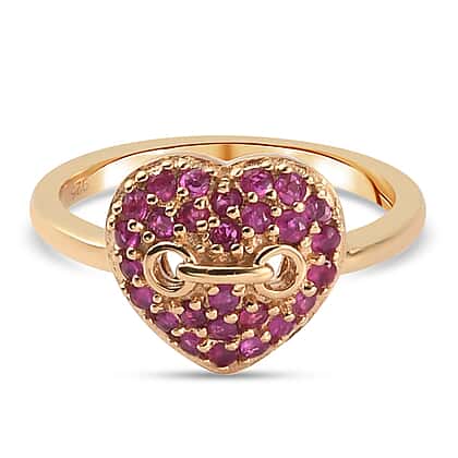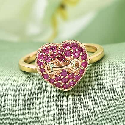 0.54 Ct. Ruby Cluster Heart Ring in Gold Plated Sterling Silver