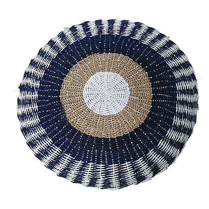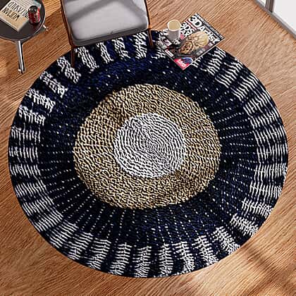 Bali Collection - 100% Handmade Woven Seagrass Rug (Size-100 Cm) - White and Navy