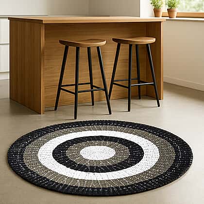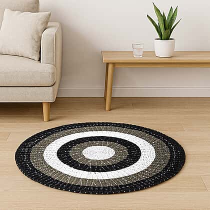 Bali Collection - 100% Handmade Woven Seagrass Rug (Size-100 Cm) - White, Black & Beige
