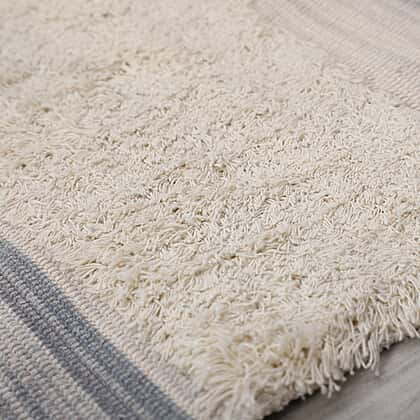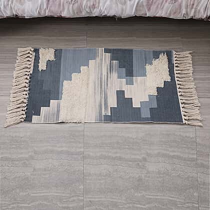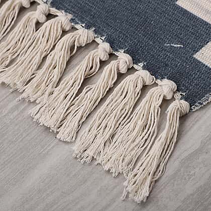 Block Pattern Tufted Rug with Tassel in Cream and Light Grey (Size 57x90cm)
