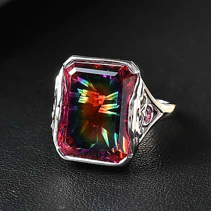Sajen Silver - Celestial Quartz Ring in Rhodium Overlay Sterling Silver 14.70 Ct, Silver Wt. 4.70 Gms.