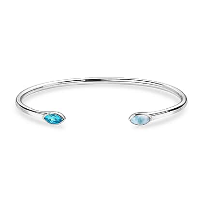 Sajen Silver - Larimar & Celestial Swiss Blue Mystic Quartz Bangle (Size 7.5) in Rhodium Overlay Sterling Silver