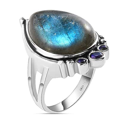 - The stunning bluish Labradorite set on the ring dazzles in slightly different hues when looked upon from a new angle because of the wonderful phenomena called arborescence