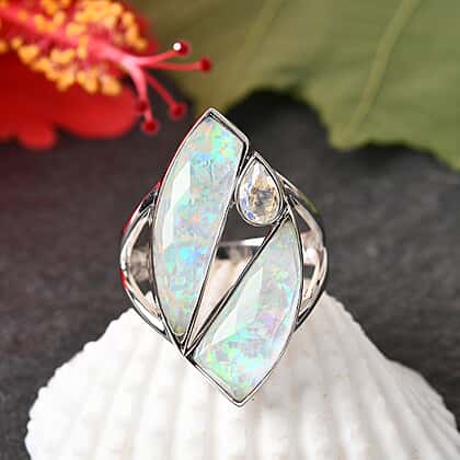 Sajen Silver 3.3 Ct. Opal Quartz , Rainbow Snow Mystic Quartz Ring in Rhodium Plated Sterling Silver