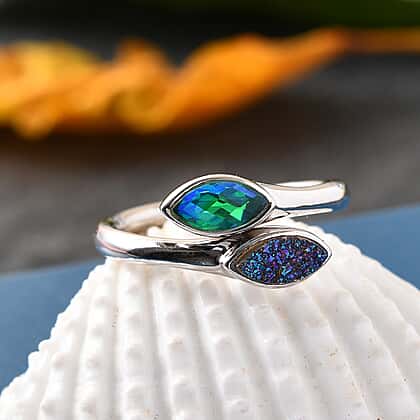 Sajen Silver ILLUMINATION Collection - Drusy Forest and Doublet Quartz Hollow Ring in Rhodium Overlay Sterling Silver 1.50Ct.
