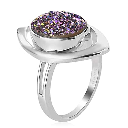 Sajen Silver 3.8 Ct. Drusy Agate Ring in Rhodium Overlay Sterling Silver