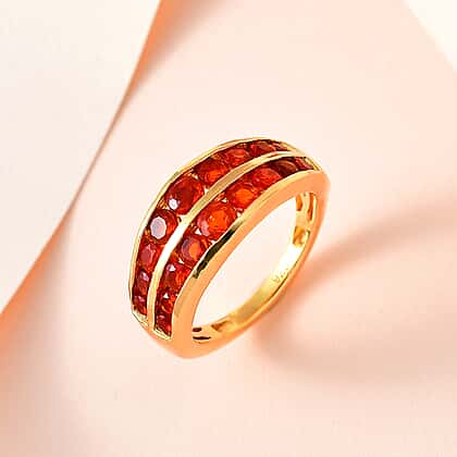 Salamanca Fire Opal Half-Eternity Ring in 18K Gold Yellow Sterling Silver 1.28 Ct.