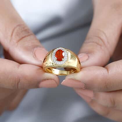 Salamanca Fire Opal and Natural Zircon Signet Halo Ring in 18K Yellow Gold Vermeil Plated Sterling Silver