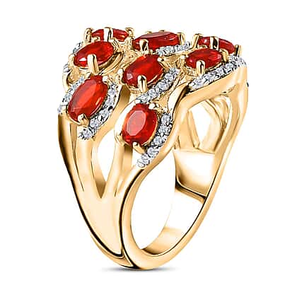 Salamanca Fire Opal & Natural Zircon Wave Ring in 18K Gold Vermeil Sterling Silver 1.85 Ct