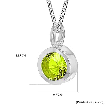 Green Cubic Zirconia Solitaire Aug Birthstone Pendant in Sterling Silver
