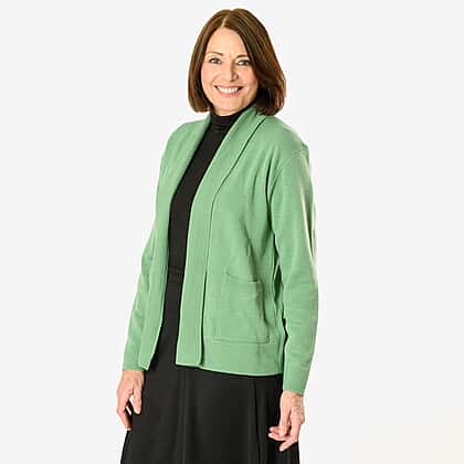 Refresh your wardrobe with the Emma Pure and Natural knitted cardigan in a sophisticated olive shade. Designed for effortless layering, this versatile piece features a relaxed fit that drapes beautifully. Crafted from a soft acrylic knit, it provides lightweight warmth, making it perfect for any season. The ribbed trims add subtle texture, while the long sleeves and straight hem create a flattering silhouette. Two front pockets enhance both style and practicality, offering a cosy place for essentials. Whether dressing up or keeping it casual, this cardigan is a timeless addition to any collection, blending comfort with understated elegance.
