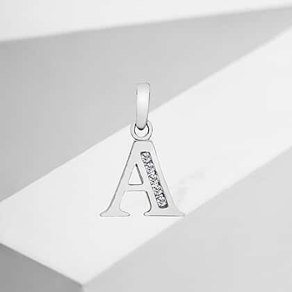 A Initial Pendant in 9K White Gold Cubic Zirconia 10mm x 12mm