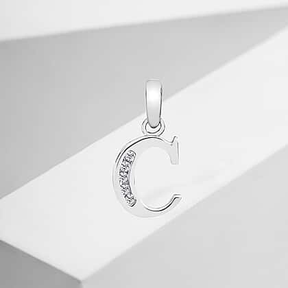 C Initial Pendant in 9K White Gold Cubic Zirconia 8mm x 12mm