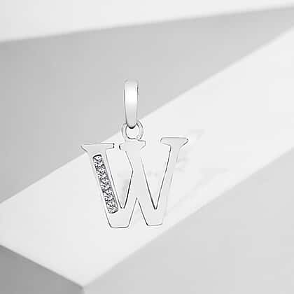 W Initial Pendant in 9K White Gold Cubic Zirconia 12.8mm x 17.5mm