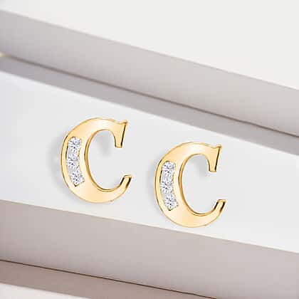 C Initial Stud Earrings in 9K Yellow Gold Cubic Zirconia 6mm x 7mm