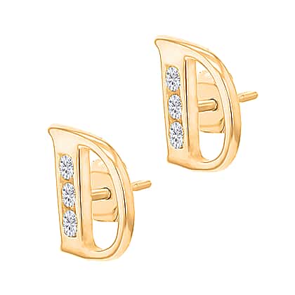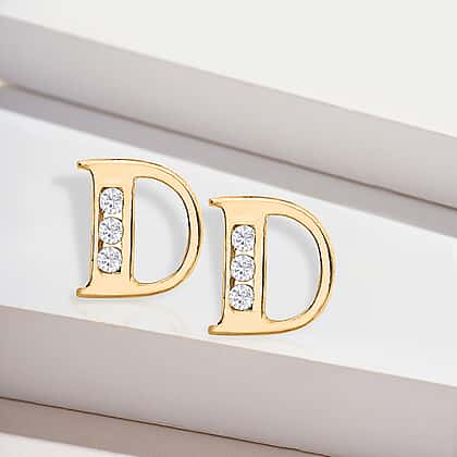 D Initial Stud Earrings in 9K Yellow Gold Cubic Zirconia 6mm x 6mm