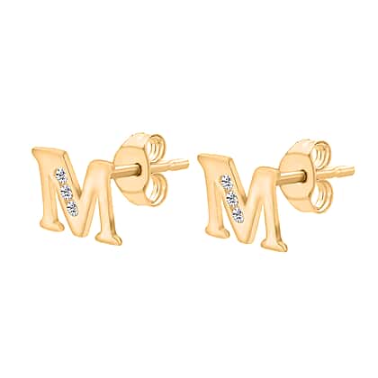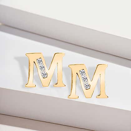 M Initial Stud Earrings in 9K Yellow Gold Cubic Zirconia 8mm x 7mm